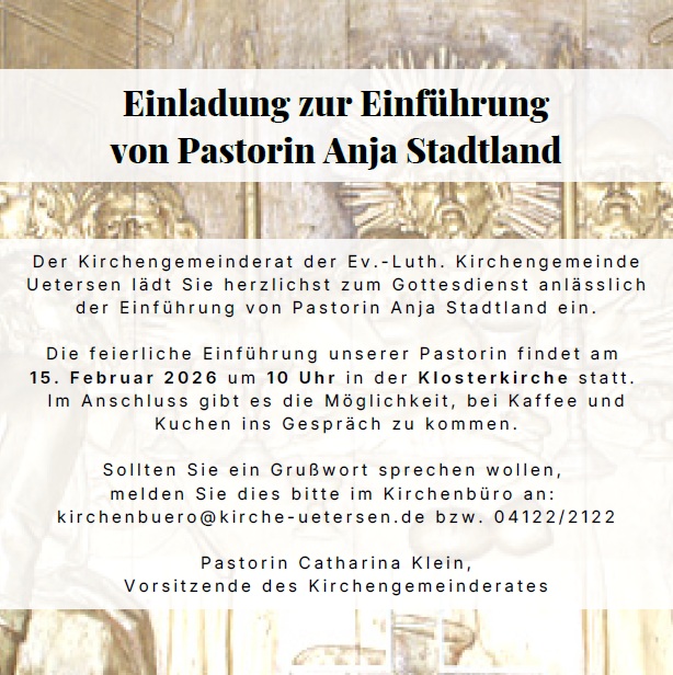 Am Sonntag, den 15. Februar 2026 um 10 Uhr findet die Einführung von unserer neuen Pastorin Anja Stadtland in der Klosterkirche statt.